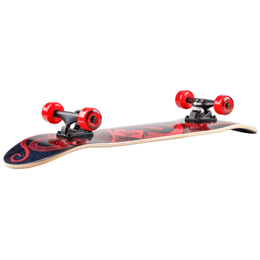 Колеса размером по диаметру и ширине 54мм и 35 мм, накатистые и скоростные, послушные, не подводят при выполнении трюков и экстремальных ситуациях. Параметры жесткости составляют 85 А, параметры жесткости бушингов – 95 а. В сочетании с алюминиевой усиленной подвеской размерами 5 дюймов и двойным концевым изгибом езда и прыжки становятся качественными. Дека скейтборда широкая, допускает размещение 2-х стоп взрослого пользователя. Размеры по длине и ширине составляют 31 дюйм и 11,5 мм соответственно. Нескользящая поверхностная часть обеспечивает высокие параметры безопасности райдера. Для покупки и заказа модели сейчас предлагаем связаться с менеджером интернет-магазина.