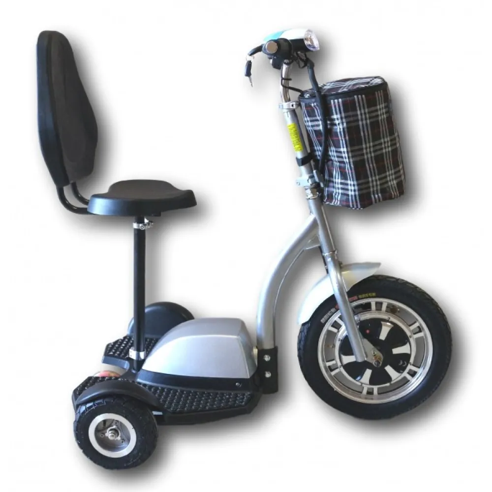 Zappy 500 W S это электосамокат новой версии, трехколесная комфортная модель подойдет для людей разного возраста, особенно оценят люди старшего поколения. Три колеса делают самокат устойчивым, платформа большая с резиновым покрытием, при желании сидение со спинкой можно снять. Конструкция Zappy 500 W S внушает доверие.