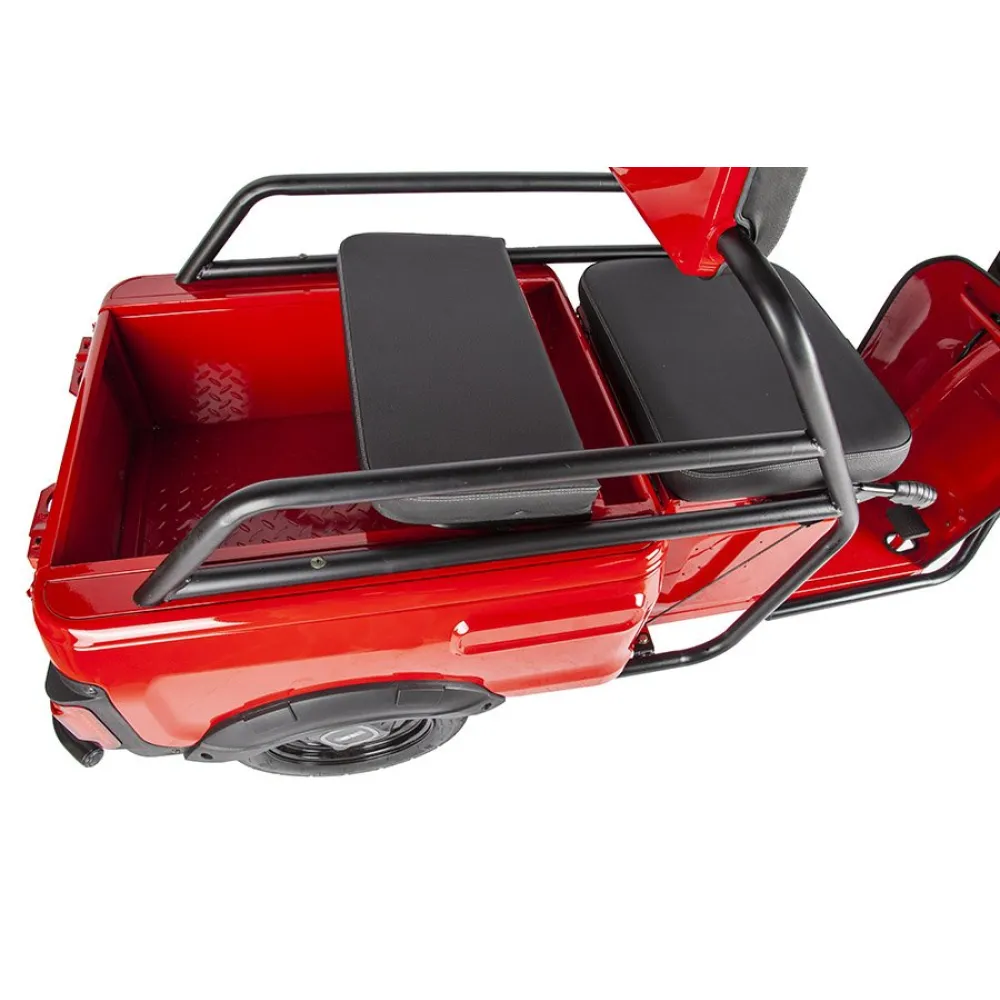 Модель оснащена мягким сиденьем, повторяющим анатомические части тела и снижающими нагрузку с позвоночника. Имеется дополнительное сиденье, благодаря которому одиночная прогулка превращается в удовольствие. Из дополнительных элементов и аксессуаров производитель выделяет вместительную переднюю металлическую корзину, зеркала заднего вида, мощную светодиодную фару, удобную нескользящую платформу для ног.