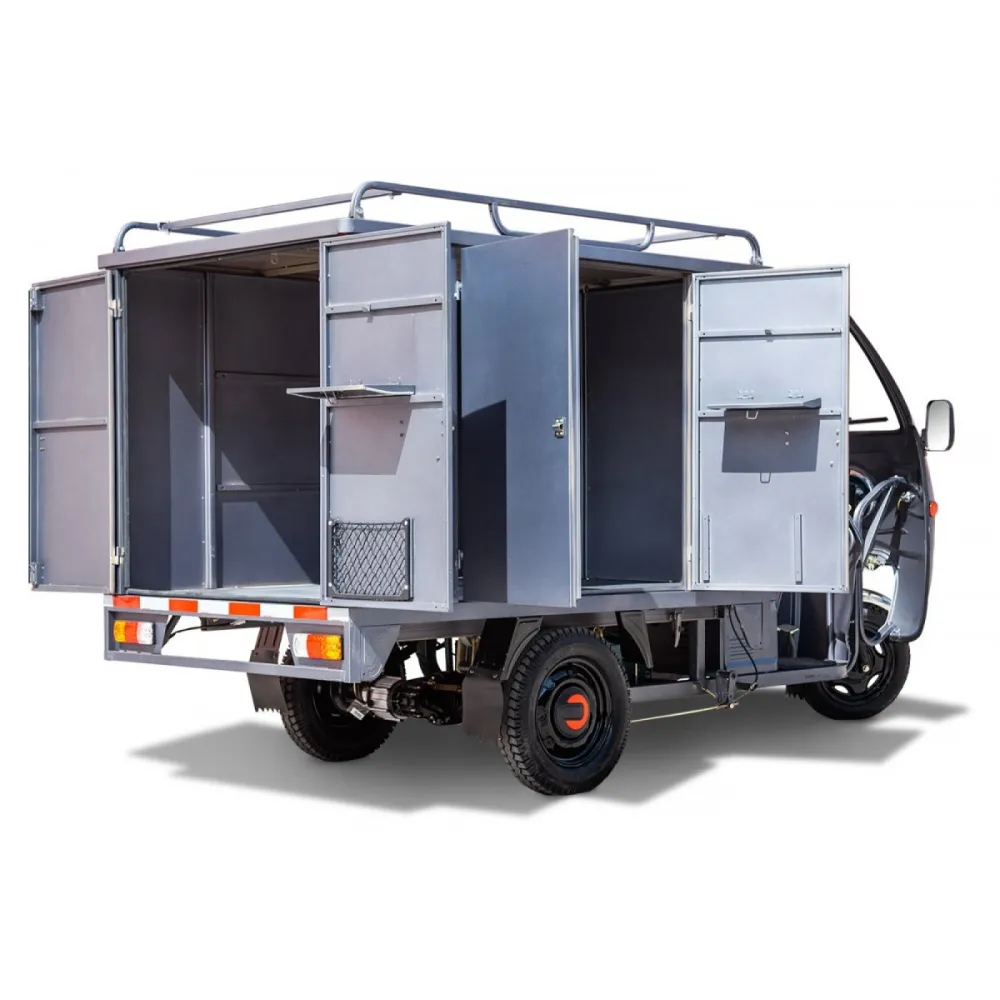 Усиленная конструкция рамы обеспечивает максимальную грузоподъемность до 500 кг. Оригинальность деталей и высокое качество сборки являются приоритетными для производителя. Модель оснащена мощным двигателем 1000 Вт. Емкий аккумулятор обеспечивает преодоление расстояния на одном заряде до 60 км. Улучшенные технические показатели позволяют развивать максимальную скорость до 25 км/час. Возможность размещения дополнительного аккумулятора делает технику универсальной и увеличивает автономность использования. Закрытая кабина транспортного средства является одним из существенных достоинств.
