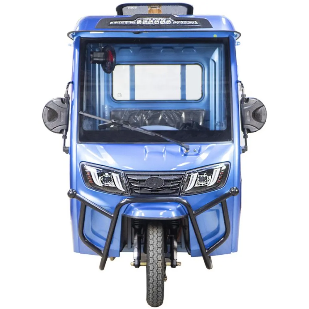 Темно-синий цвет трицикла придает ему стильный и привлекательный внешний вид. Этот цвет подчеркивает его профессиональное использование и делает его заметным на дороге.
