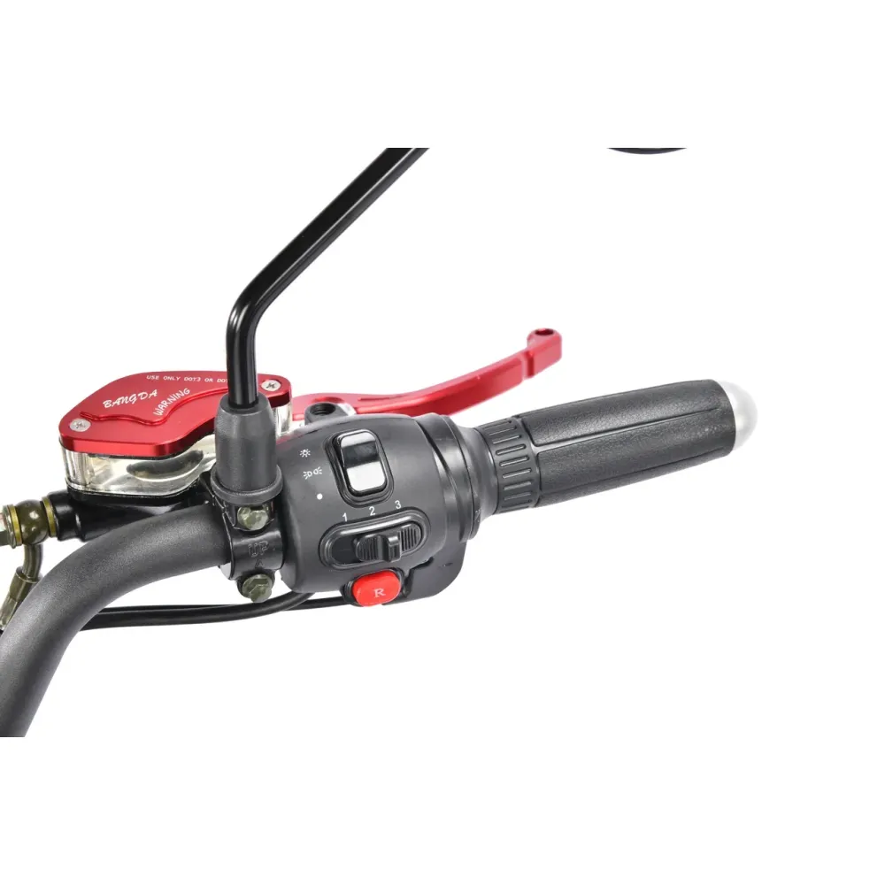 На руле находятся кнопки зажигания, переключения передач и управления. На WS-Pro 3000W Trike+ черный расположены два вида тормозов – гидравлические и дисковые, первые сзади, вторые спереди. Инженеры усилили систему амортизации, поэтому езда становится безопаснее и комфортнее.