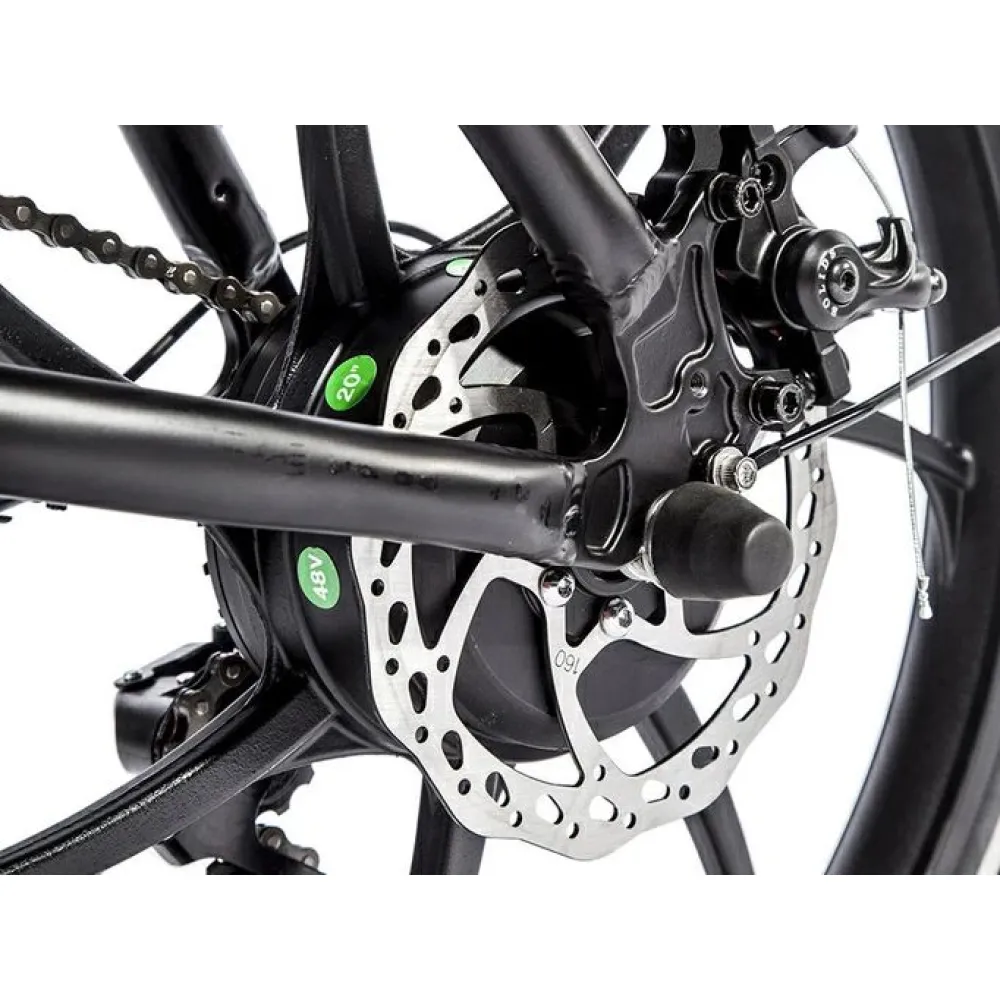 Накатистые устойчивые 20–дюймовые колеса в сочетании с емкой батареей обещают активное и безопасное времяпрепровождение. Передние и задние амортизаторы сглаживают движение по кочкам, делают его плавным. Батарея размещена за седлом. Надежно защищена от воздействия негативных факторов. 6-скоростной режим регулируется с помощью рычага. Мягкое компактное седло регулируется по высоте, удобно при длительной езде. Бортовой компьютер позволяет отслеживать скоростные параметры, степень заряда батареи и другие характеристики.