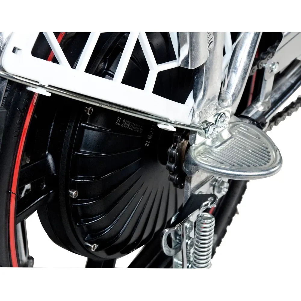 Рама электровелосипеда низкая, изготовлена из прочного алюминия. АКБ размещено в боковое части, от сидения, не мешает при движении. Наличие передней корзины и удобное подножки увеличивает сферу применения электровелосипеда. Техника удобна не только для активного время провождения, но и поездок в магазин. Проблем с парковкой не возникает. Для покупки тс сейчас предлагаем связаться с нами в онлайн-чате или позвонить по телефону.