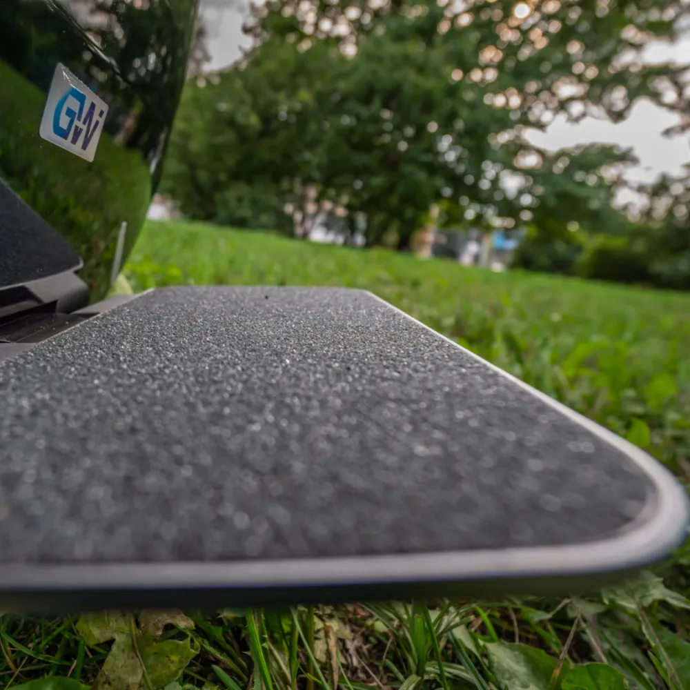 Для упрощения транспортировки и перевозки моноколеса производители предусмотрели наличие дугообразной ручки, размещенной в верхней части корпуса. Сравнительно небольшой вес техники (25.6 кг) не вызывает проблем с транспортировки и перевозкой.