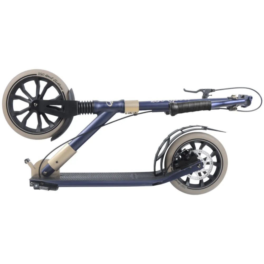 Самокат SPORT 250R - модельный ряд бренда оснащен передним амортизатором, имеет новые конструктивные особенности. Самокат рассчитан для езды по городской местности. Минимальный возраст ездока – 9 лет. Вес техники составляет 6,5 кг. Визуально ознакомиться с моделью, купить самокат по цене производителя предлагает наш интернет-магазин. Сотрудничество с нами гарантирует ряд преимущественных характеристик: быструю доставку, возможность бесплатного консультирования, другую профессиональную помощь, покупку других дополнительных аксессуаров, участие в бонусных акциях.