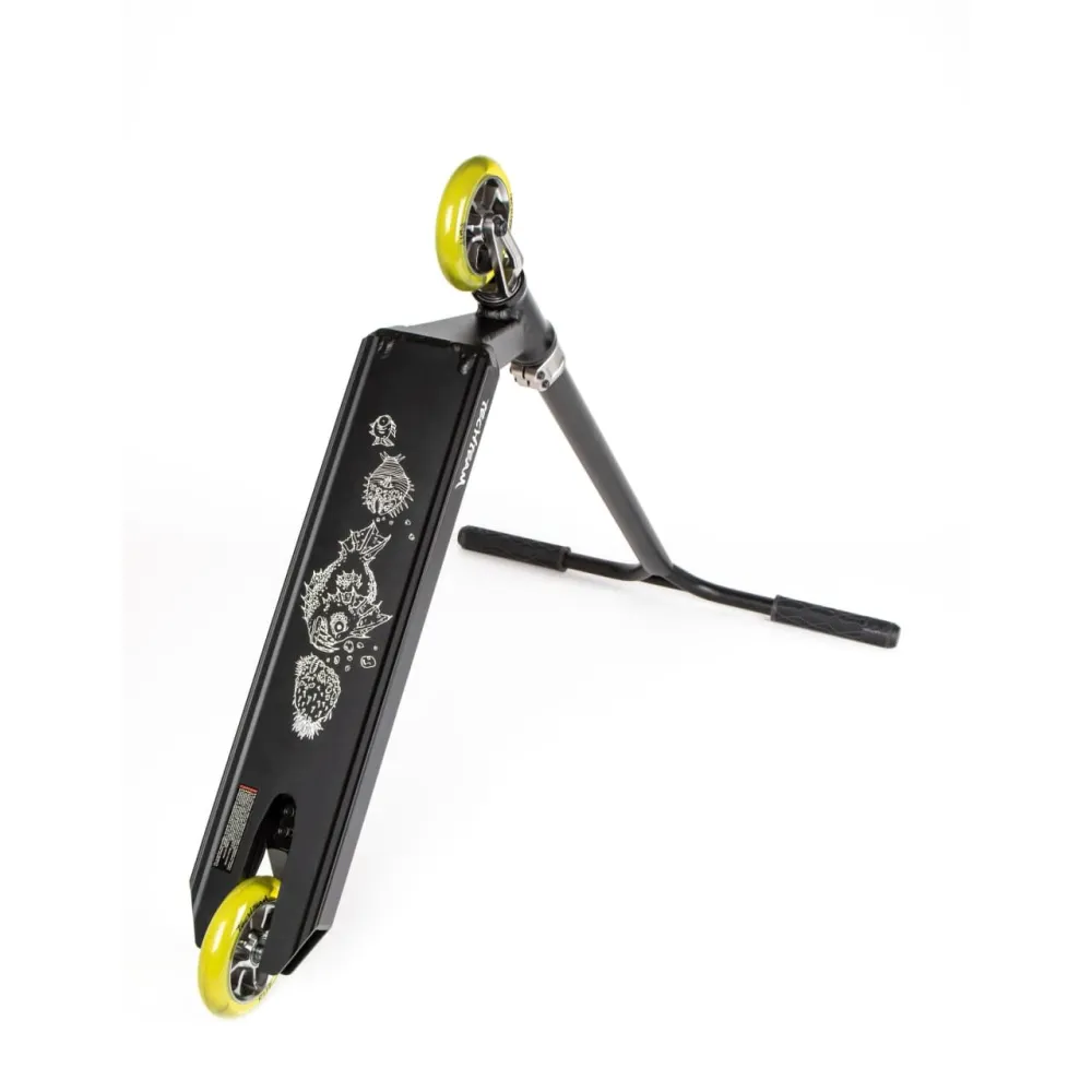САМОКАТ RUFF – продвинутая модель самоката в желто-черных цветовых оттенках. Нравится райдерам СНГ и отечественным ездокам техническими характеристиками, дизайном и простотой управления. Райдеры профи связывают технику с ершом, колючей опасной рыбой, которую стоит обходить стороной. В действительности самокат не настолько опасен. При правильном управлении техника обещает максимум эмоциональных удовольствий.