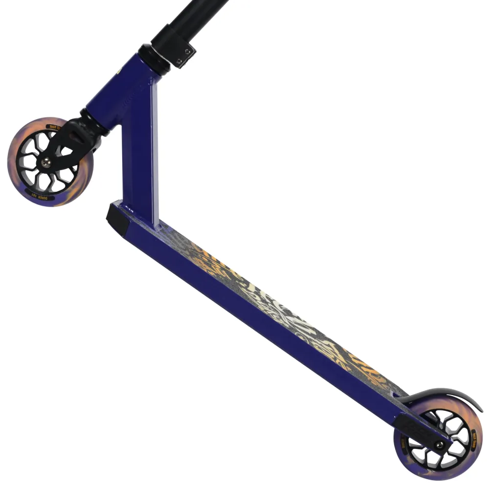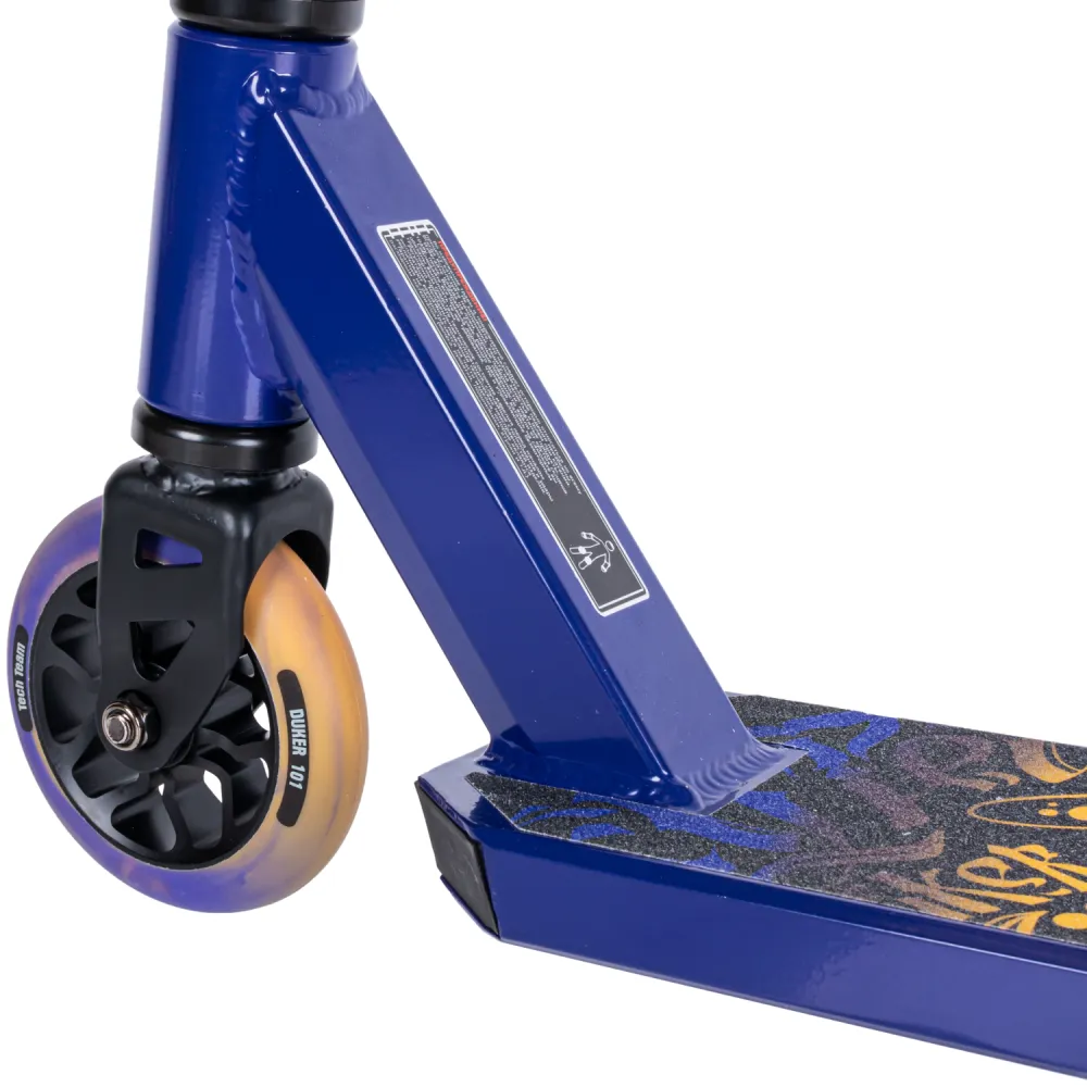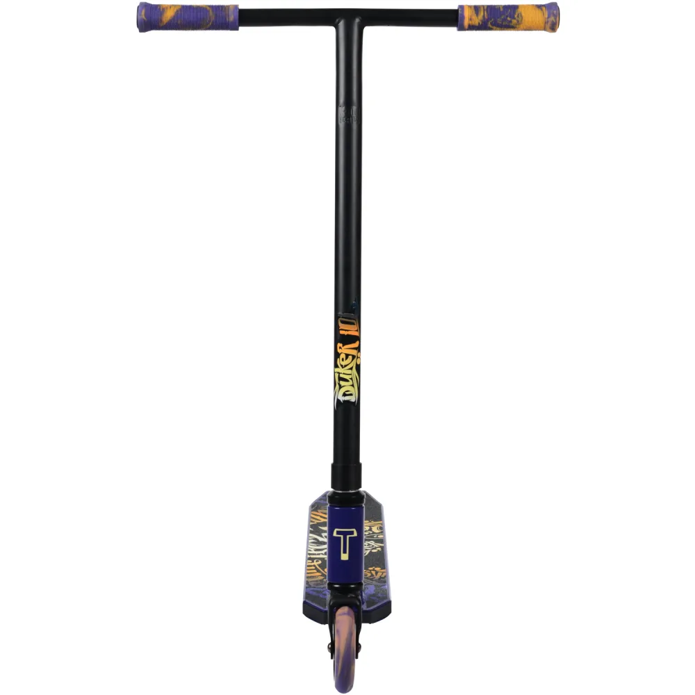 Самокаты изготавливаются в чёрных и фиолетовых тонах с дизайном «леттеринг». Грипсы 12 см, имеют два цвета с барендами из пластика.