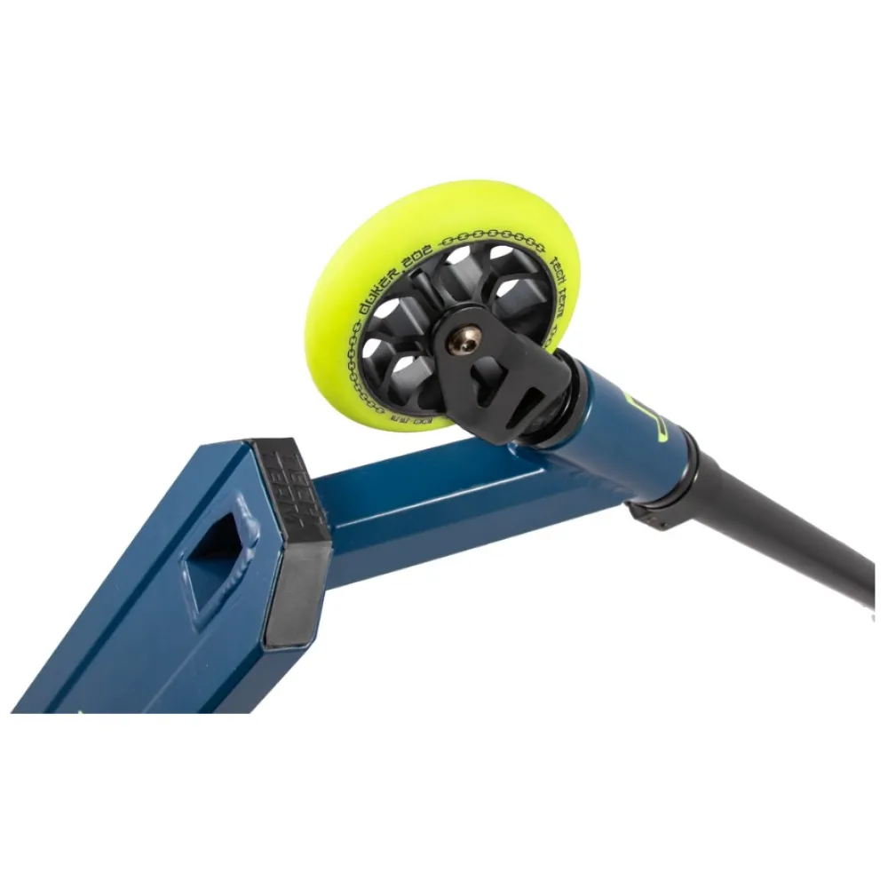 Трюковой самокат Techteam TT DUKER 202 2020 Синий - яркая и стильная модель для начинающих пользователей старше пяти лет. Данная модель обладает высокой прочностью и надежностью, позволяя уверенно осваивать различные элементы трюкового катания. По сравнению с предыдущими моделями новинка 2020-го года получила ряд улучшений. Пластиковые колёса заменены более прочными металлическими. Стальной руль Y-образной формы с диаметром 31.8 мм крепится системой HIC с зажимом на двух болтах. Резиновые грипсы предотвращают скольжение рук и обеспечивают удобный захват. Руки не устанут даже при длительных тренировках. Стальная вилка обновленной формы способна выдержать повышенные нагрузки во время выполнения различных трюков. Алюминиевая дека шириной 12 см покрыта противоскользящей шкуркой, что обеспечивает устойчивое положение райдера. Самокат предназначен для пользователей весом до 60 кг, что позволяет использовать его не только детям, но и подросткам. Яркая расцветка и современный дизайн придутся по душе юным пользователям. Трюковой самокат Techteam TT DUKER 202 2020 создан с заботой о комфорте и безопасности начинающих райдеров и дает возможность обучиться катанию в рампе и выполнению базовых трюков.